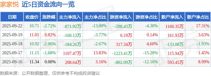 证券之星消息,截至2025年9月22日收盘,家家悦(603708)报收于10.71元,下跌2.72%,换手率0.98%,成交量6.27万手,成交额6704.66万元。