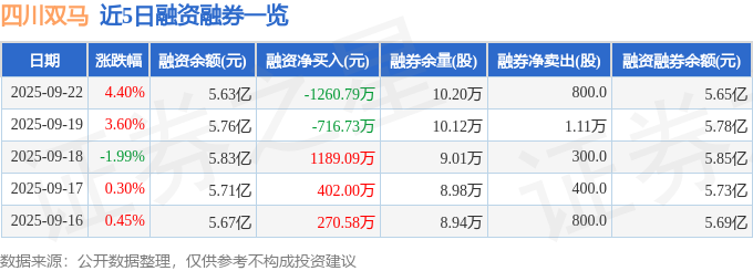 证券之星消息,截至2025年9月22日收盘,四川双马(000935)报收于21.34元,上涨4.4%,换手率3.47%,成交量26.49万手,成交额5.61亿元。