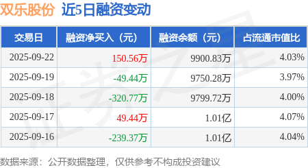 证券之星消息,9月22日,双乐股份(301036)融资买入693.36万元,融资偿还542.8万元,融资净买入150.56万元,融资余额9900.83万元。