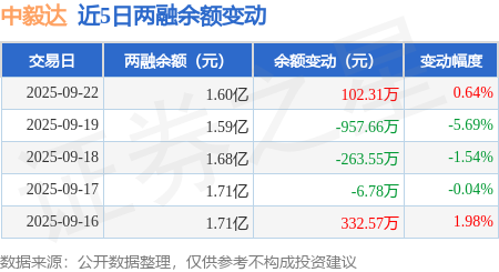 证券之星消息,9月22日,中毅达(600610)融资买入1528.26万元,融资偿还1425.31万元,融资净买入102.95万元,融资余额1.59亿元。