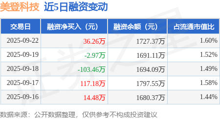 证券之星消息,9月22日,美登科技(838227)融资买入112.91万元,融资偿还76.65万元,融资净买入36.26万元,融资余额1727.37万元。