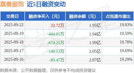 证券之星消息,9月22日,嘉曼服饰(301276)融资买入402.86万元,融资偿还370.14万元,融资净买入32.72万元,融资余额1.95亿元,近20个交易日中有13个交易日出现融资净买入。