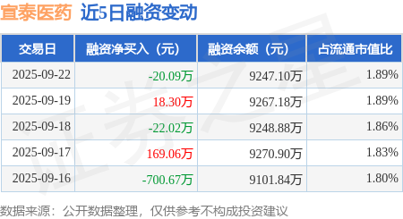 证券之星消息,9月22日,宣泰医药(688247)融资买入388.84万元,融资偿还408.93万元,融资净卖出20.09万元,融资余额9247.1万元,近20个交易日中有12个交易日出现融资净买入。