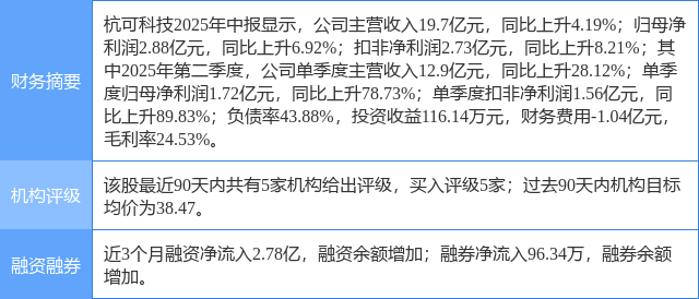 今日杭可科技(688006)涨6.33%,收盘报39.98元。