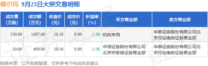 证券之星消息,9月23日德尔玛发生大宗交易,交易数据如下: