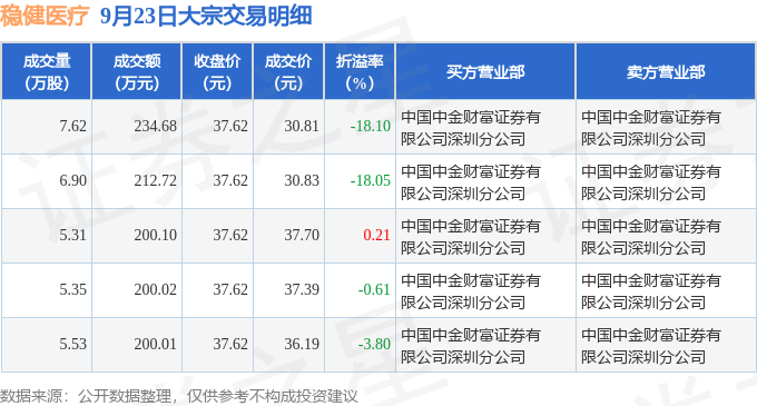 证券之星消息,9月23日稳健医疗发生大宗交易,交易数据如下: