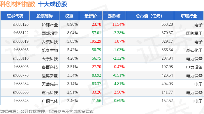 近10日内科创材料(000689)指数成份股做了调整,新纳入了4只股票,剔除了4只股票。