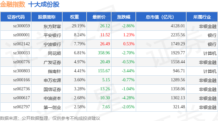 金融指数(399240)十大成份股详情如下: