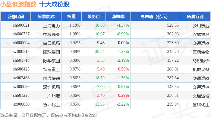 小盘低波(399408)指数十大成份股详情如下: