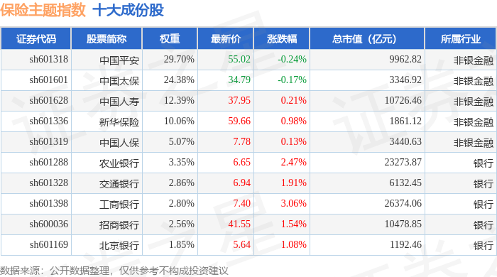 证券之星消息,9月23日,保险主题(399809)指数报收于2262.27点,涨0.34%,成交319.68亿元,换手率0.34%。当日该指数成份股中,上涨的有10家,工商银行以3.06%的涨幅领涨,下跌的有7家,中油资本以4.28%的跌幅领跌。