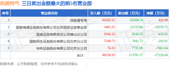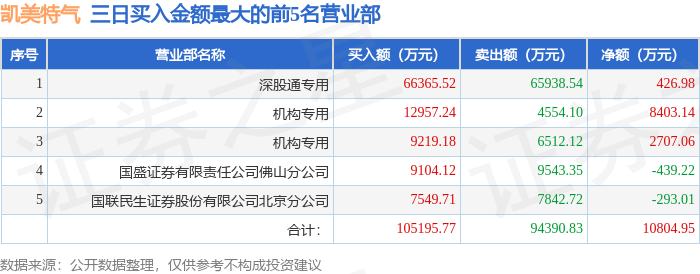 从龙虎榜公布的三日买卖数据来看,机构合计净买入1.11亿元,北向资金合计净买入426.98万元。佛山系、毛老板等知名游资榜上有名。(知名游资佛山系一般指国盛证券有限责任公司佛山分公司席位、知名游资毛老板一般指国泰海通证券股份有限公司北京国贸证券营业部席位、知名游资佛山系一般指国盛证券有限责任公司佛山分公司席位,根据市场资料整理,仅供参考)