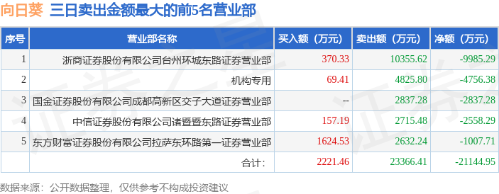 证券之星消息,沪深交易所2025年9月23日公布的交易公开信息显示,向日葵(300111)因日涨幅达到15%的前5只证券,连续三个交易日内,涨幅偏离值累计达到30%的证券登上龙虎榜。此次是近5个交易日内第1次上榜。