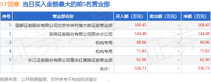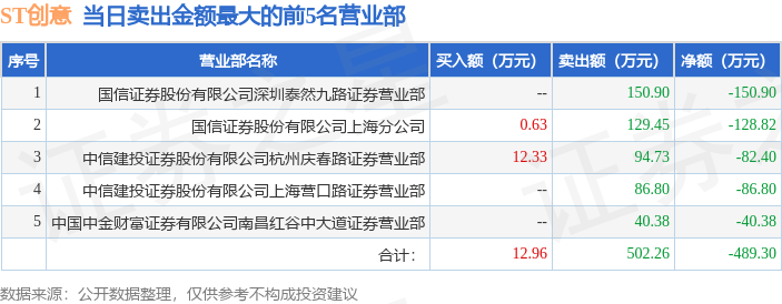 9月23日ST创意(300366)龙虎榜数据:机构净买入159.89万元