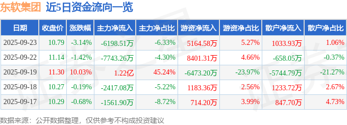 证券之星消息,截至2025年9月23日收盘,东软集团(600718)报收于10.79元,下跌3.14%,换手率7.69%,成交量91.41万手,成交额9.8亿元。