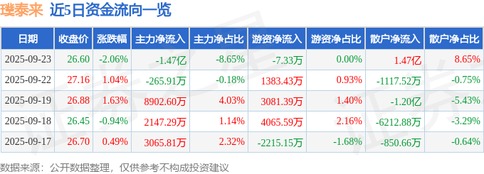 证券之星消息,截至2025年9月23日收盘,璞泰来(603659)报收于26.6元,下跌2.06%,换手率2.99%,成交量63.85万手,成交额17.03亿元。