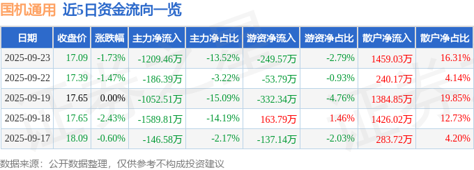 9月23日的资金流向数据方面,主力资金净流出1209.46万元,占总成交额13.52%,游资资金净流出249.57万元,占总成交额2.79%,散户资金净流入1459.03万元,占总成交额16.31%。