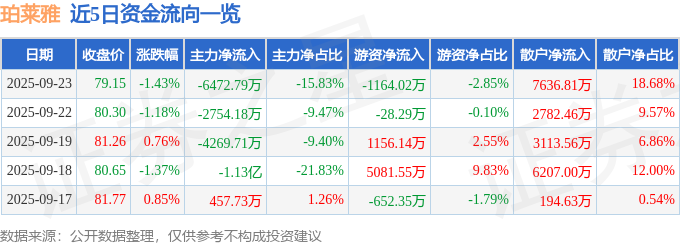 证券之星消息,截至2025年9月23日收盘,珀莱雅(603605)报收于79.15元,下跌1.43%,换手率1.3%,成交量5.16万手,成交额4.09亿元。