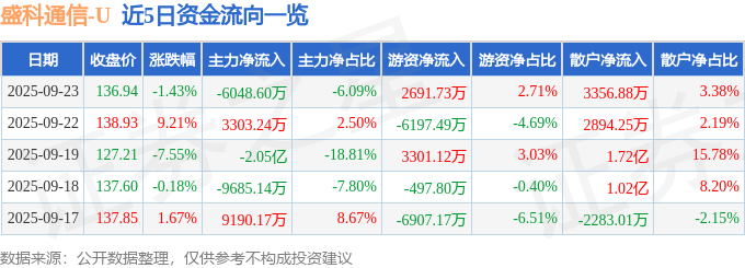 证券之星消息,截至2025年9月23日收盘,盛科通信(688702)报收于136.94元,下跌1.43%,换手率3.57%,成交量7.26万手,成交额9.92亿元。