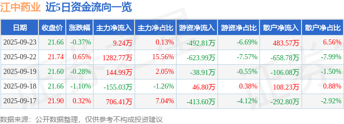 证券之星消息,截至2025年9月23日收盘,江中药业(600750)报收于21.66元,下跌0.37%,换手率0.54%,成交量3.41万手,成交额7366.73万元。