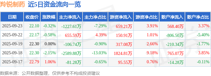 证券之星消息,截至2025年9月23日收盘,羚锐制药(600285)报收于22.1元,下跌0.32%,换手率1.35%,成交量7.65万手,成交额1.68亿元。