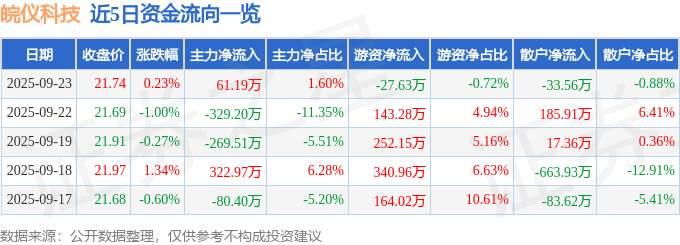 证券之星消息,截至2025年9月23日收盘,皖仪科技(688600)报收于21.74元,上涨0.23%,换手率1.32%,成交量1.78万手,成交额3833.92万元。