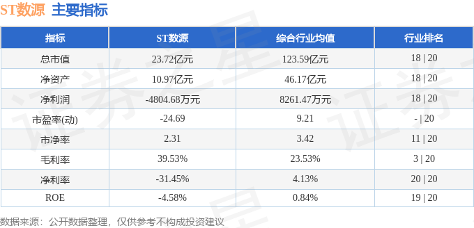 ST数源2025年中报显示,公司主营收入1.46亿元,同比下降16.14%;归母净利润-4804.68万元,同比下降167.54%;扣非净利润-4909.2万元,同比下降11.5%;其中2025年第二季度,公司单季度主营收入7709.11万元,同比下降9.32%;单季度归母净利润-3752.35万元,同比下降144.16%;单季度扣非净利润-3555.3万元,同比下降22.76%;负债率54.08%,投资收益-912.0万元,财务费用1900.59万元,毛利率39.53%。ST数源(000909)主营业务:电子信息类产品的研制与销售、科技产业园区的开发与运营、商品贸易以及房地产开发业务等。