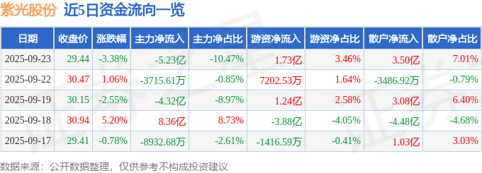 证券之星消息,截至2025年9月23日收盘,紫光股份(000938)报收于29.44元,下跌3.38%,换手率5.92%,成交量169.18万手,成交额49.98亿元。