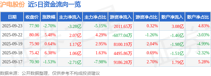 证券之星消息,截至2025年9月23日收盘,沪电股份(002463)报收于77.9元,下跌2.7%,换手率4.19%,成交量80.53万手,成交额63.71亿元。