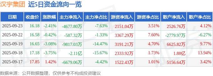 证券之星消息,截至2025年9月23日收盘,汉宇集团(300403)报收于16.18元,下跌2.41%,换手率8.86%,成交量37.84万手,成交额6.13亿元。