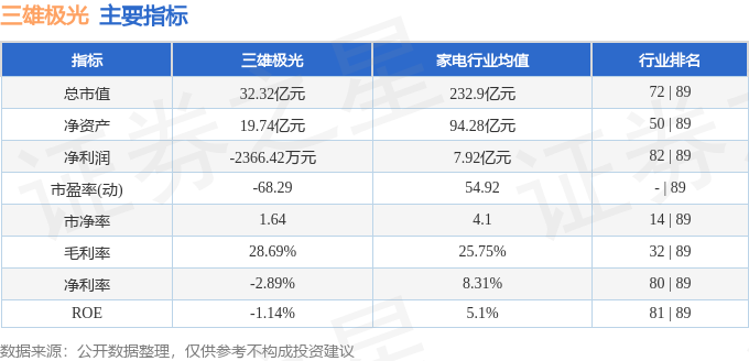 三雄极光2025年中报显示,公司主营收入8.19亿元,同比下降16.49%;归母净利润-2366.42万元,同比下降156.41%;扣非净利润-3955.07万元,同比下降241.39%;其中2025年第二季度,公司单季度主营收入4.85亿元,同比下降16.95%;单季度归母净利润-835.08万元,同比下降130.08%;单季度扣非净利润-1873.53万元,同比下降182.44%;负债率31.28%,投资收益936.47万元,财务费用-33.01万元,毛利率28.69%。三雄极光(300625)主营业务:半导体照明产品及照明控制类产品的研发、生产与销售,并提供与之配套的照明方案设计、安装调试等服务。