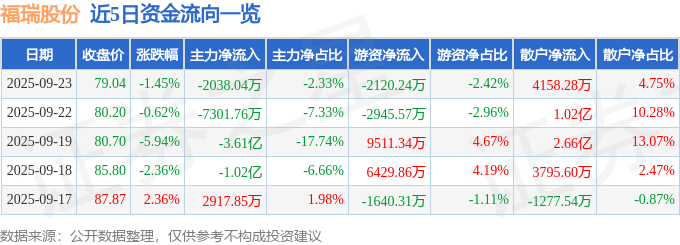 证券之星消息,截至2025年9月23日收盘,福瑞股份(300049)报收于79.04元,下跌1.45%,换手率4.75%,成交量11.08万手,成交额8.75亿元。