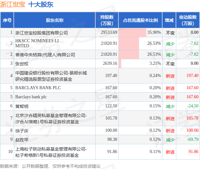 根据浙江世宝2025年中报公布的十大股东详情如下:
