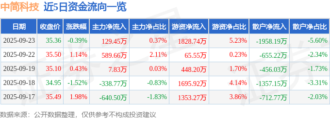 9月23日的资金流向数据方面,主力资金净流入129.45万元,占总成交额0.37%,游资资金净流入1828.74万元,占总成交额5.23%,散户资金净流出1958.19万元,占总成交额5.6%。