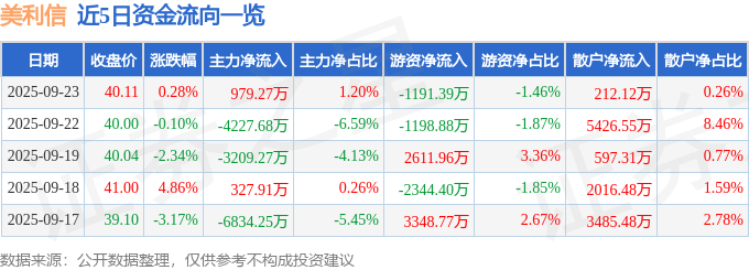 证券之星消息,截至2025年9月23日收盘,美利信(301307)报收于40.11元,上涨0.28%,换手率18.75%,成交量20.44万手,成交额8.15亿元。