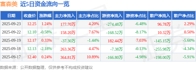 9月23日的资金流向数据方面,主力资金净流入177.7万元,占总成交额4.2%,游资资金净流出274.48万元,占总成交额6.48%,散户资金净流入96.78万元,占总成交额2.29%。