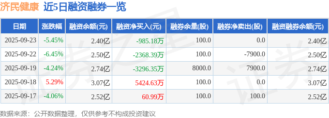 济民健康融资融券信息显示,融资方面,当日融资买入3027.64万元,融资偿还4012.83万元,融资净偿还985.18万元。融券方面,融券卖出0.0股,融券偿还0.0股,融券余量100.0股,融券余额0.12万元。融资融券余额2.4亿元。