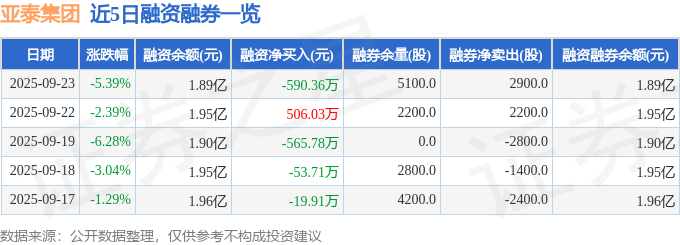 证券之星消息,截至2025年9月23日收盘,亚泰集团(600881)报收于1.93元,下跌5.39%,换手率4.52%,成交量146.11万手,成交额2.83亿元。