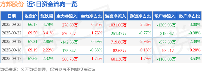 证券之星消息,截至2025年9月23日收盘,方邦股份(688020)报收于66.17元,下跌4.79%,换手率7.92%,成交量6.44万手,成交额4.37亿元。