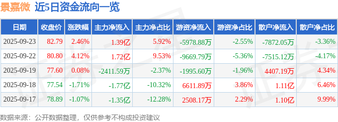 证券之星消息,截至2025年9月23日收盘,景嘉微(300474)报收于82.79元,上涨2.46%,换手率7.07%,成交量28.75万手,成交额23.41亿元。