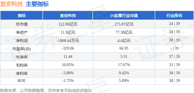 该股主要指标及行业内排名如下:
