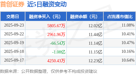 证券之星消息,9月23日,首创证券(601136)融资买入3.04亿元,融资偿还2.46亿元,融资净买入5805.67万元,融资余额12.02亿元,近20个交易日中有13个交易日出现融资净买入。
