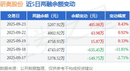 融资融券余额5207.92万元,较昨日上涨8.43%。