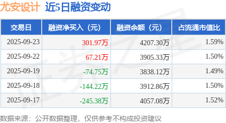 证券之星消息,9月23日,尤安设计(300983)融资买入458.13万元,融资偿还156.16万元,融资净买入301.97万元,融资余额4207.3万元。