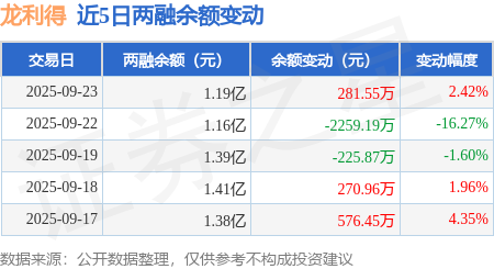 证券之星消息,9月23日,龙利得(300883)融资买入860.55万元,融资偿还578.93万元,融资净买入281.62万元,融资余额1.19亿元,近20个交易日中有12个交易日出现融资净买入。