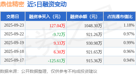 证券之星消息,9月23日,鼎佳精密(920005)融资买入229.3万元,融资偿还102.26万元,融资净买入127.04万元,融资余额1048.3万元,近20个交易日中有11个交易日出现融资净买入。