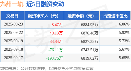 证券之星消息,9月23日,九州一轨(688485)融资买入744.32万元,融资偿还735.85万元,融资净买入8.47万元,融资余额6884.95万元,近3个交易日已连续净买入累计141.44万元。