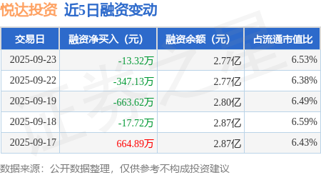 证券之星消息,9月23日,悦达投资(600805)融资买入1472.66万元,融资偿还1485.99万元,融资净卖出13.32万元,融资余额2.77亿元。