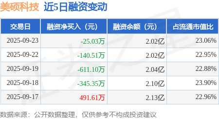 证券之星消息,9月23日,美硕科技(301295)融资买入529.64万元,融资偿还554.67万元,融资净卖出25.03万元,融资余额2.02亿元,近20个交易日中有14个交易日出现融资净买入。