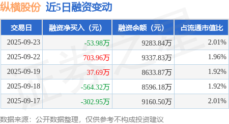 证券之星消息,9月23日,纵横股份(688070)融资买入809.5万元,融资偿还863.48万元,融资净卖出53.98万元,融资余额9283.84万元,近20个交易日中有11个交易日出现融资净买入。