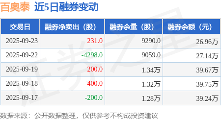证券之星消息,9月23日,百奥泰(688177)融资买入1028.32万元,融资偿还1143.14万元,融资净卖出114.82万元,融资余额2.45亿元。